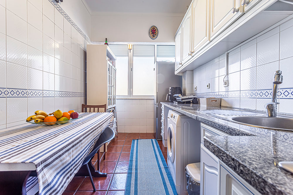 Pavimento em tijoleira vidrada muito bem aplicado e cerâmicos na casa de banho e cozinha.